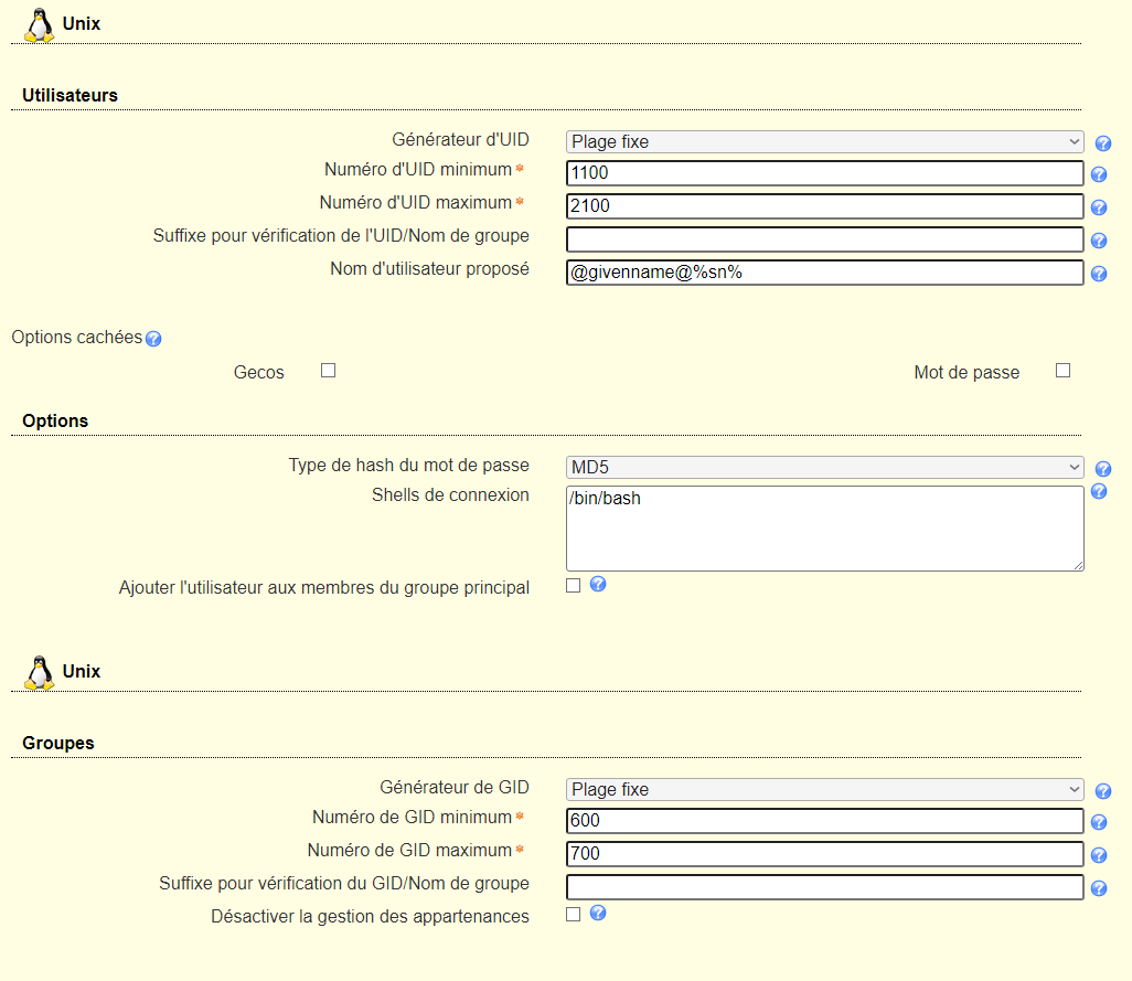 - Suffix LDAP = L'OU qui sera créée contenant les groupes