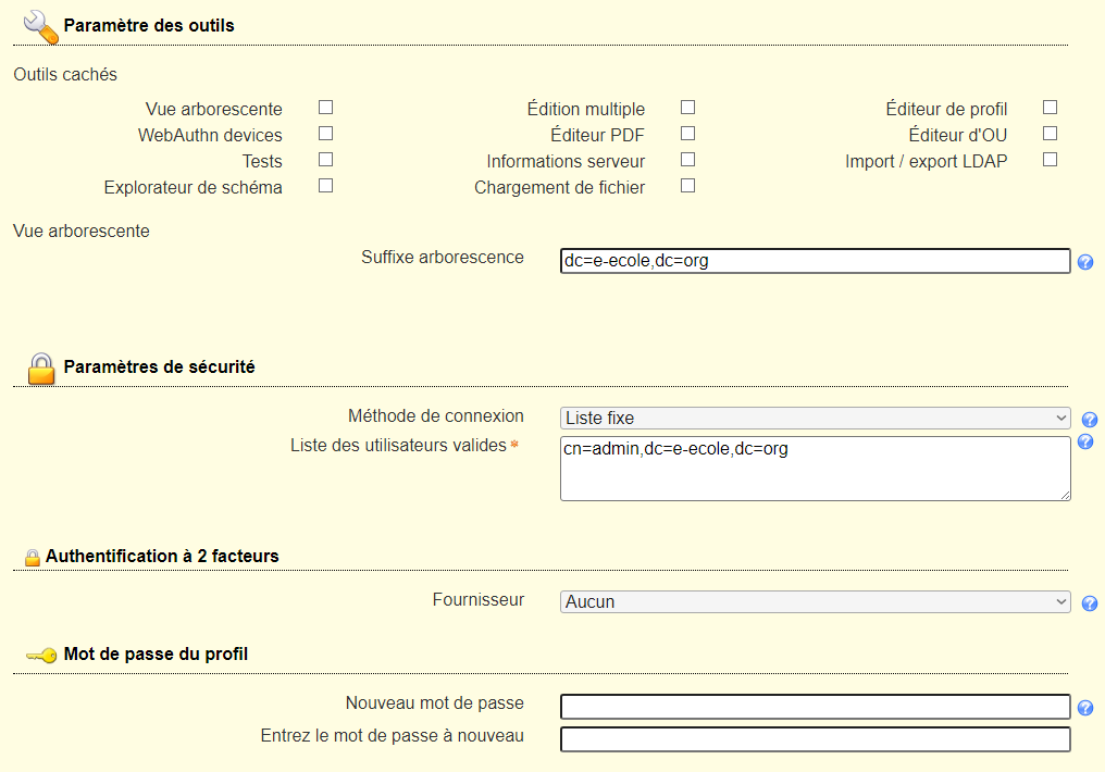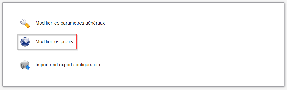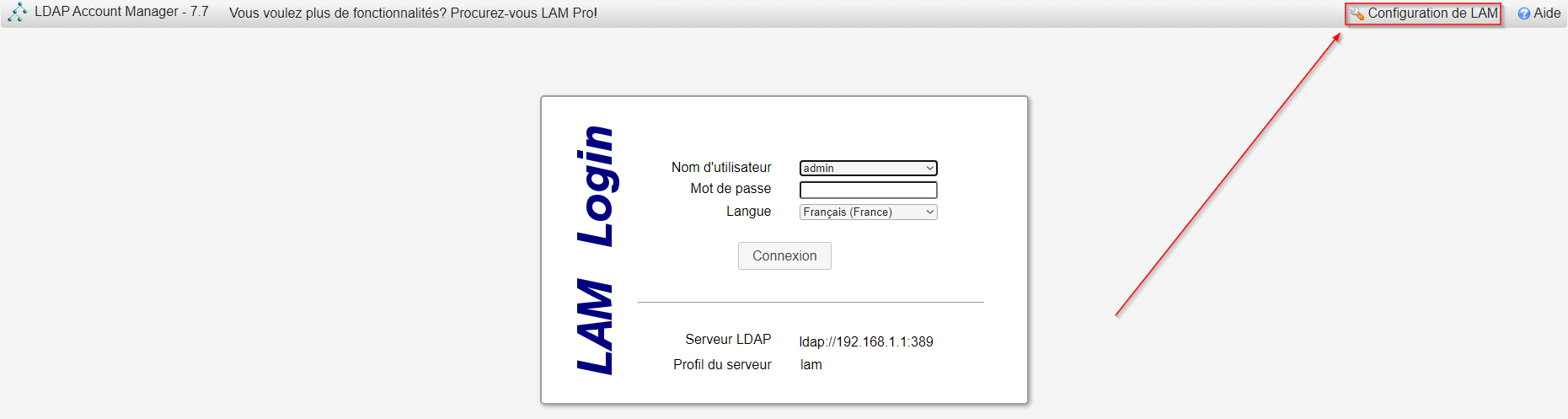 Pour configurer LAM, se rendre dans "configuration de LAM" en haut à droite puis "Modifier les profils"